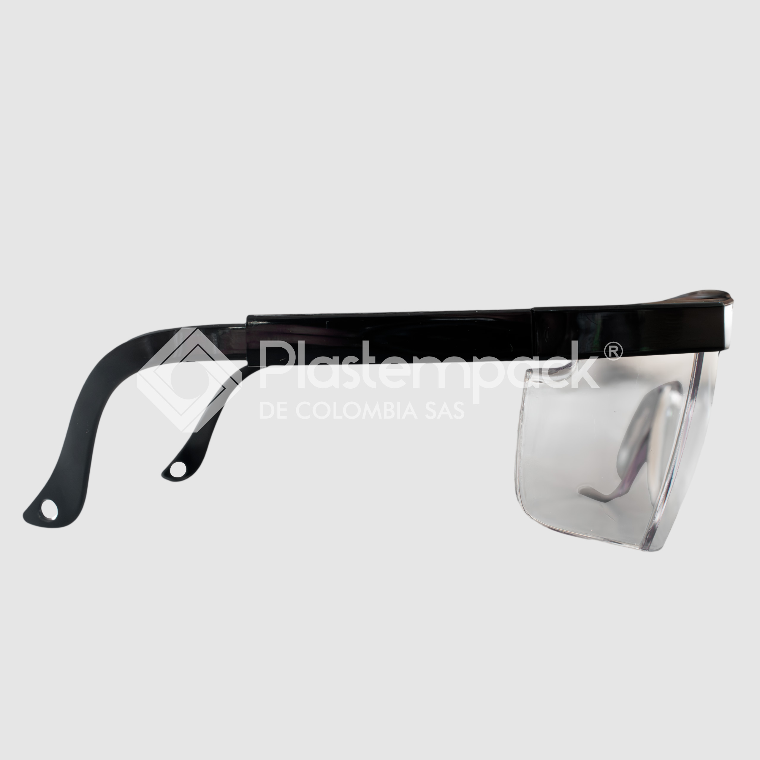 Gafas de seguridad fabricadas en policarbonato de alta resistencia, diseñadas para ofrecer protección visual en entornos industriales. Cuentan con lente transparente anti-rayones y protección UV, garantizando una visión clara y duradera. Su diseño ergonómico con protección frontal y lateral y patillas ajustables brinda un ajuste cómodo y seguro para uso prolongado. Ideales para industria, construcción, talleres y manufactura, como parte de los elementos de protección personal (EPP).